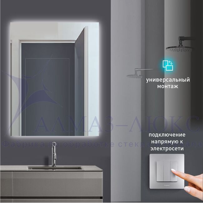 Зеркало без сенсорной кнопки – отличный вариант для тех, кому не нравится светящийся кружок на зеркале. Разработано специально для выведения к электросети под клавишу вкл/выкл света. Подсветка будет включаться непосредственно при включении света.