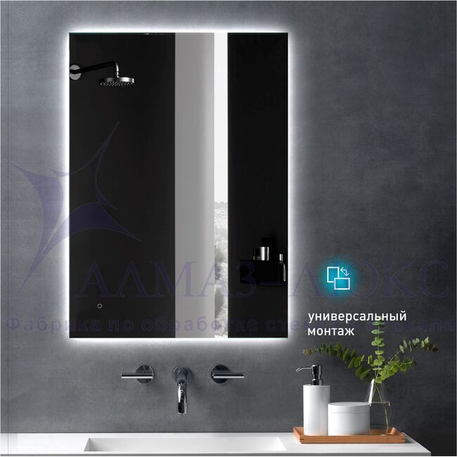 Led-зеркало с сенсорной кнопкой с диммером (регулировкой яркости света). Для включения зеркала достаточно дотронуться до сенсора. Для изменения яркости света подержите палец на сенсорной кнопке. Кнопка имеет память (все последующие включения будут на последнем уровне яркости) и приятное для глаз плавное включение света.