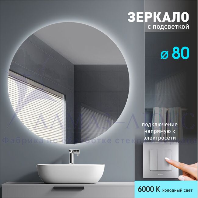 Зеркало с фоновой подсветкой Tokyo 80-6 (D 80см) – холодный свет