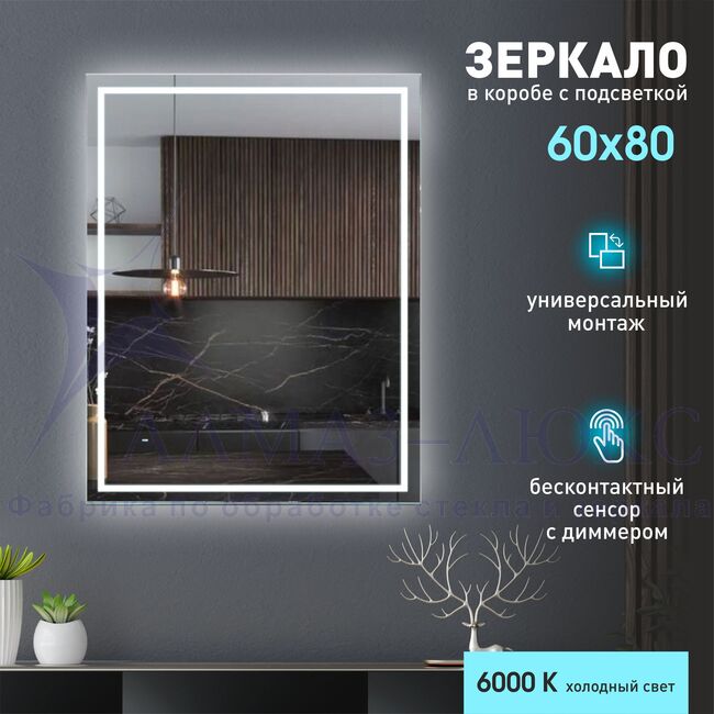 Led-зеркало "Dakar" с лицевым датчиком движения (бесконтактное включение). Для включения зеркала достаточно сделать взмах рукой перед датчиком на расстоянии 4-7 см. Датчик оснащен диммером - для регулировки яркости подсветки подержите руку в зоне действия датчика. Благодаря тому, что датчик имеет память, все последующие включения будут на последнем уровне яркости. Бесконтактное включение позволяет избежать отпечатков пальцев и легко поддерживать зеркало в чистоте.