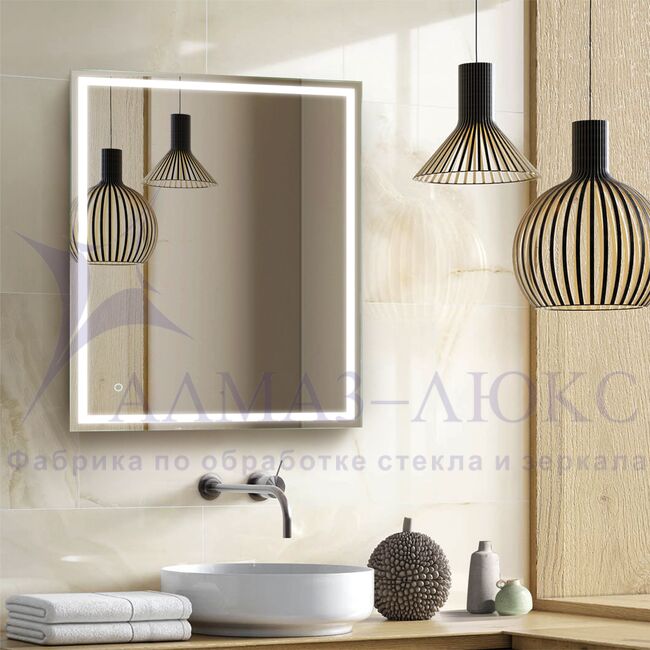 Зеркало с фронтальной подсветкой, с сенсорной кнопкой Dallas 8060s-6 (80х60 см) в светонепропускающем коробе/холодный свет