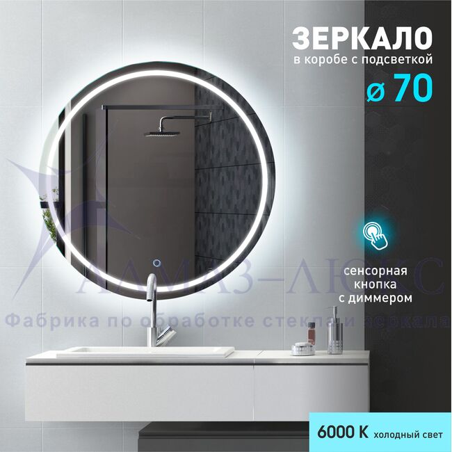Зеркало с фронтальной подсветкой, с сенсорной кнопкой Boston 70s-6 (D 70 см) в с