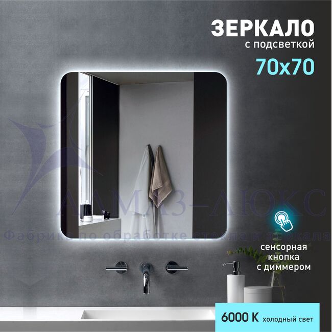 коллекция «Travel»Тип: зеркало с LED подсветкойНазначение: интерьерноеМатериал: зеркало влагостойкоеЦвет: сереброУстановка: подвесноеФорма: прямоугольное с закругленными угламиПоложение: горизонтальноеДизайн: подсветка по периметру, свечение по стенеПодсветка: LEDВысота: 700 ммШирина: 700 ммГлубина: 25 ммКомплектация: дюбель-крючки 2шт., шнур с вилкой, руководство по эксплуатации.Гарантия: 24 месяца- Серебряное влагостойкое зеркальное полотно производства AGC.- Открытая подсветка.- Сенсорная кнопка включения с диммером.- Электрическая сеть 220-240V | 50Hz.- Низкое энергопотребление А++.- Безопасность - светодиоды запитаны напряжением 12V.- Долгий срок службы - не менее 50.000 часов непрерывной работы.- Защита от брызг и пыли – IP44.- Свет - 6.000К.