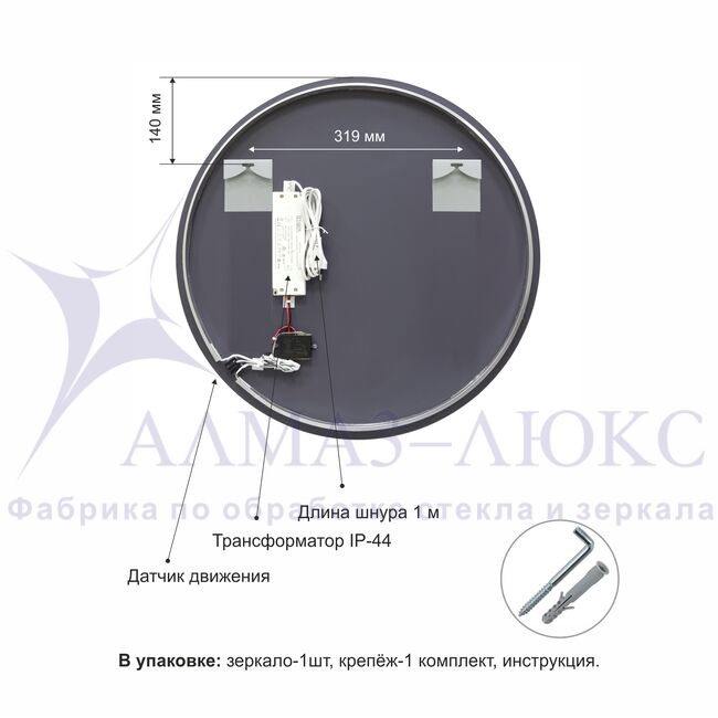 Led-зеркало с торцевым датчиком движения (бесконтактное включение). Для включения зеркала достаточно сделать взмах рукой со стороны датчика на расстоянии 4-7 см. Датчик оснащен диммером, для регулировки яркости подсветки - подержите руку в зоне его действия. Благодаря тому, что датчик имеет память, все последующие включения будут на последнем уровне яркости света. Бесконтактное включение позволяет избежать отпечатков пальцев и легко поддерживать зеркало в чистоте. Датчик смонтирован на обратной стороне зеркала за зеркальным полотном и не заметен для глаз.
