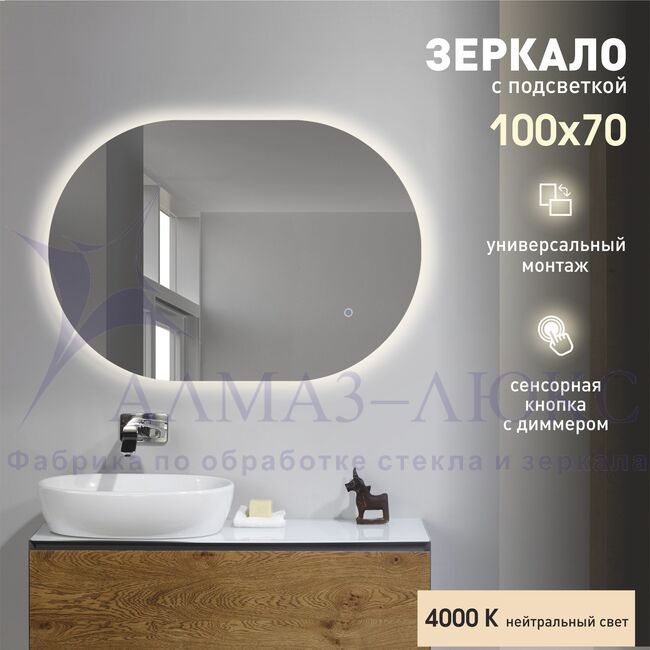 Зеркало с фоновой подсветкой, сенсорной кнопкой Seoul 10070s-4 (100х70 см) - нейтральный свет